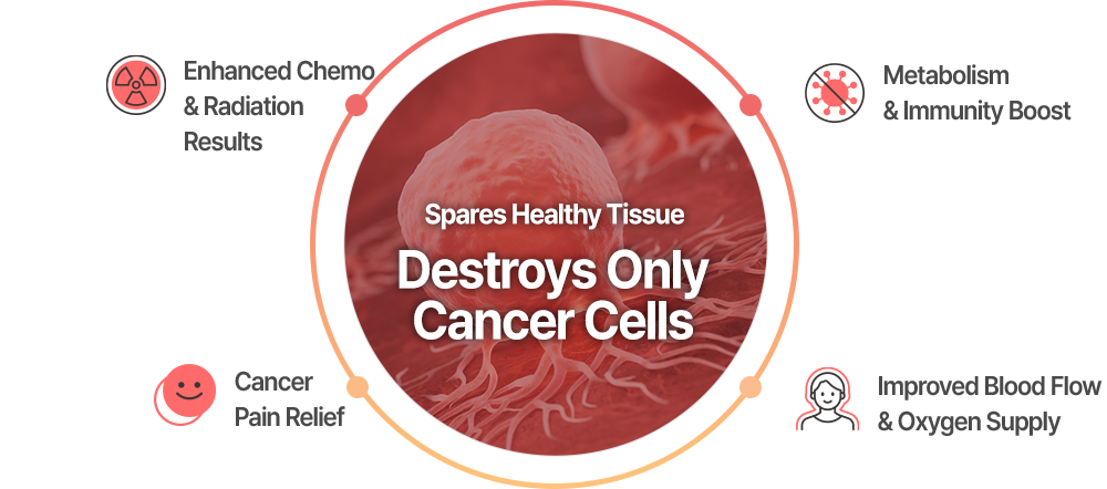 heating cancer cells above 42°C while minimizing damage to normal cells, reducing their function and leading them to necrosis.