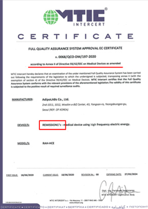 The REMISSION1℃ radiofrequency hyperthermia device has been officially certified and evaluated by multiple authorities,